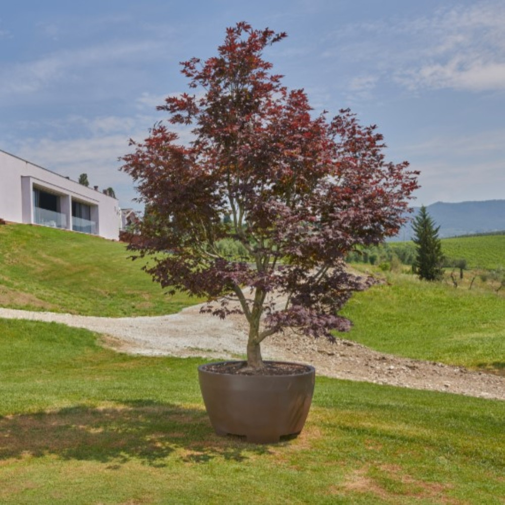 Masszív, nagyméretű műanyag planténer, ideális olajfák, citrusfélék és más mediterrán növények nevelésére. Időjárásálló, UV- és fagyálló anyagból készült, így kültéren és beltéren egyaránt tartós megoldás. A könnyű, mégis erős szerkezet megkönnyíti a mozgatást, míg a vízelvezető nyílások biztosítják az optimális gyökérszellőzést. Modern, letisztult megjelenésével bármilyen kertbe, teraszra vagy télikertbe harmonikusan illeszkedik.